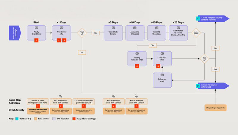 Automation is where ROI lives. Your CRM should trigger activity based on behaviour and guide prospects along tailored journeys.